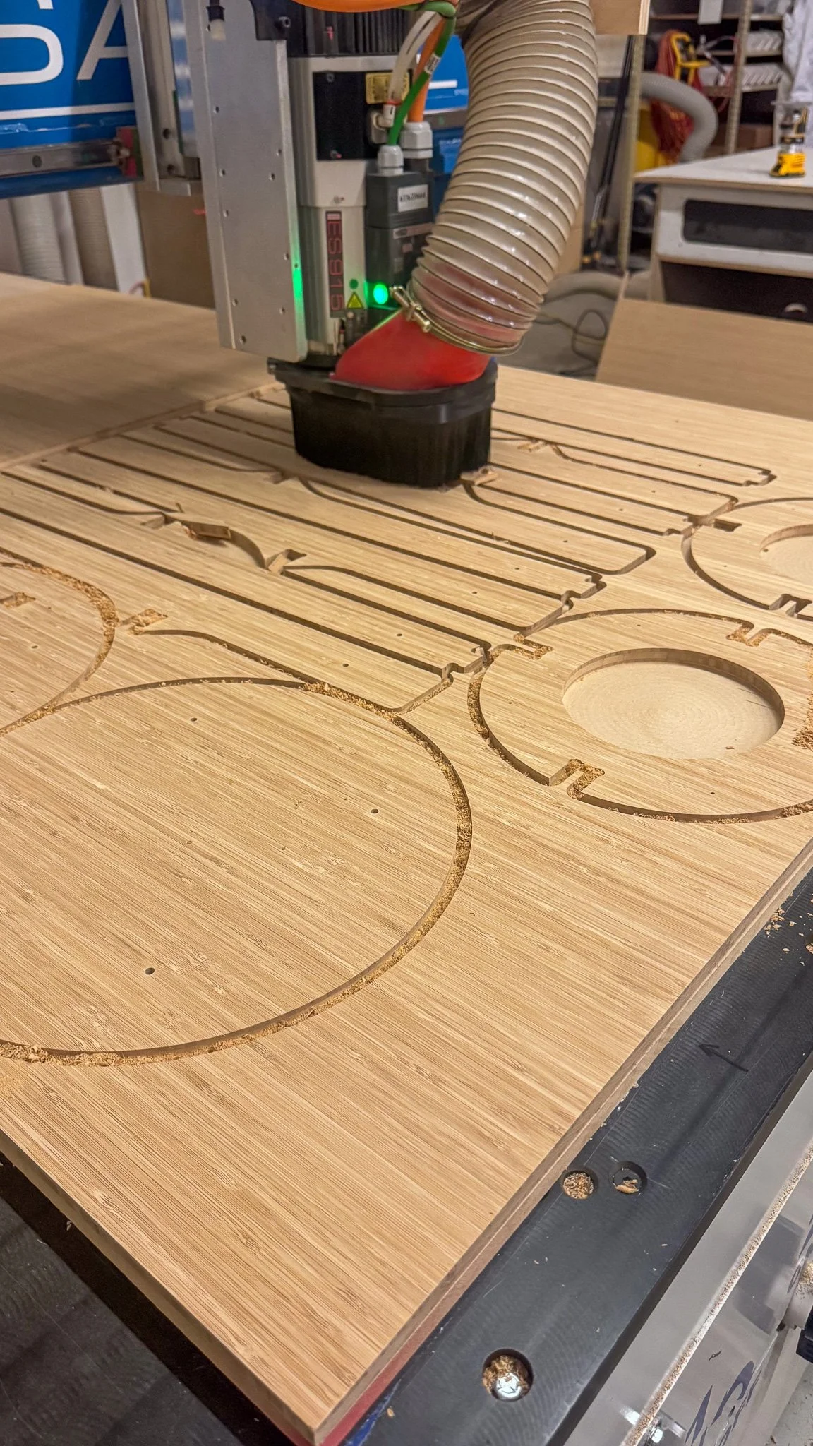 CNC router cutting (2D profiles, dados, pockets, drill patterns)